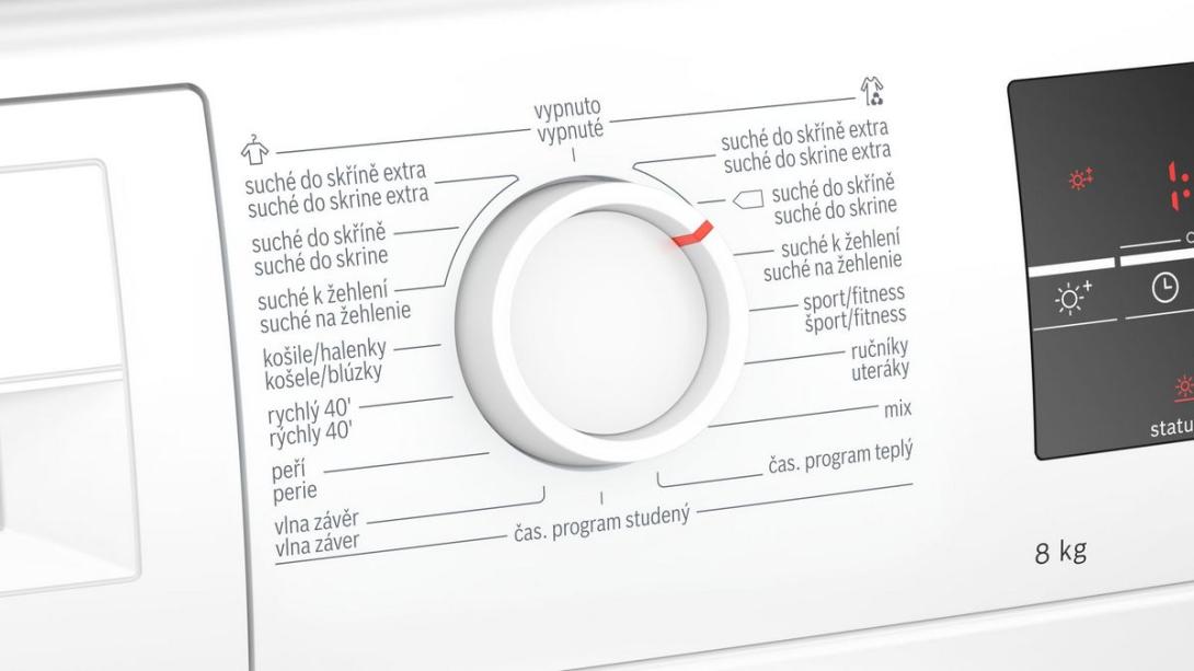 - AutoDry: šetrne usuší bielizeň presne podľa požadovaného stupňa sušenia.