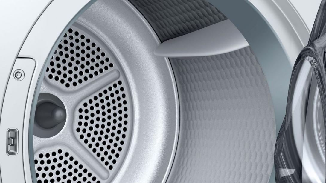 - systém šetrného sušenia SensitiveDrying: veľký nerezový bubon so špeciálnou štruktúrou a unášačmi s mäkkým povrchom pre jemnú starostlivosť o bielizeň