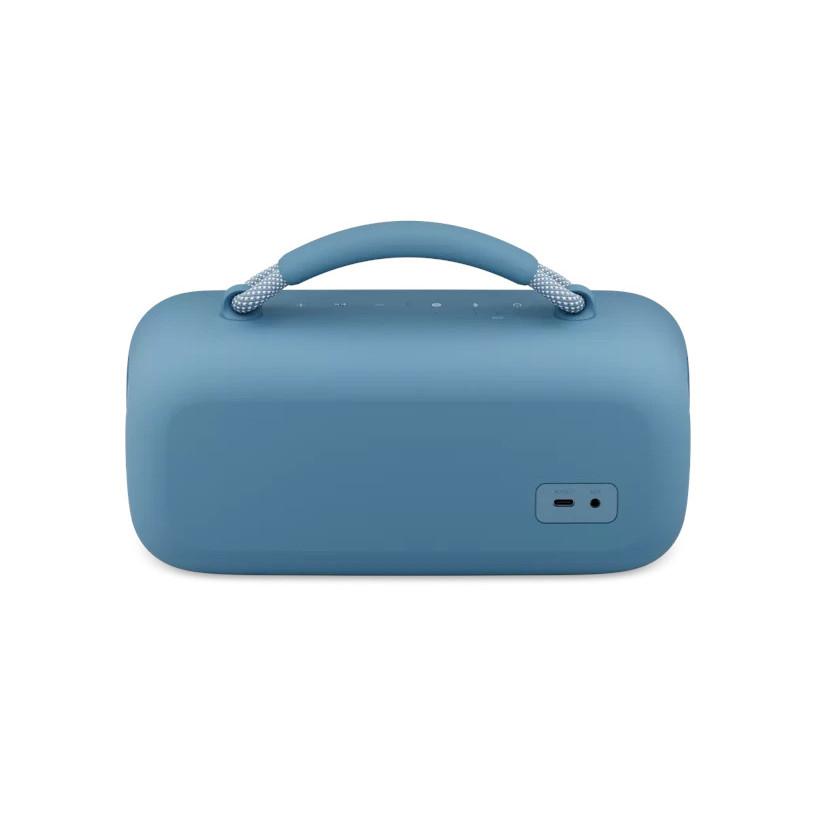 Kompaktný dizajn s držadlom na uchop a choď vytvorený s jedinečným lanom s mäkkou textúrou umožňuje reproduktor ľahko prenášať na akúkoľvek párty.
