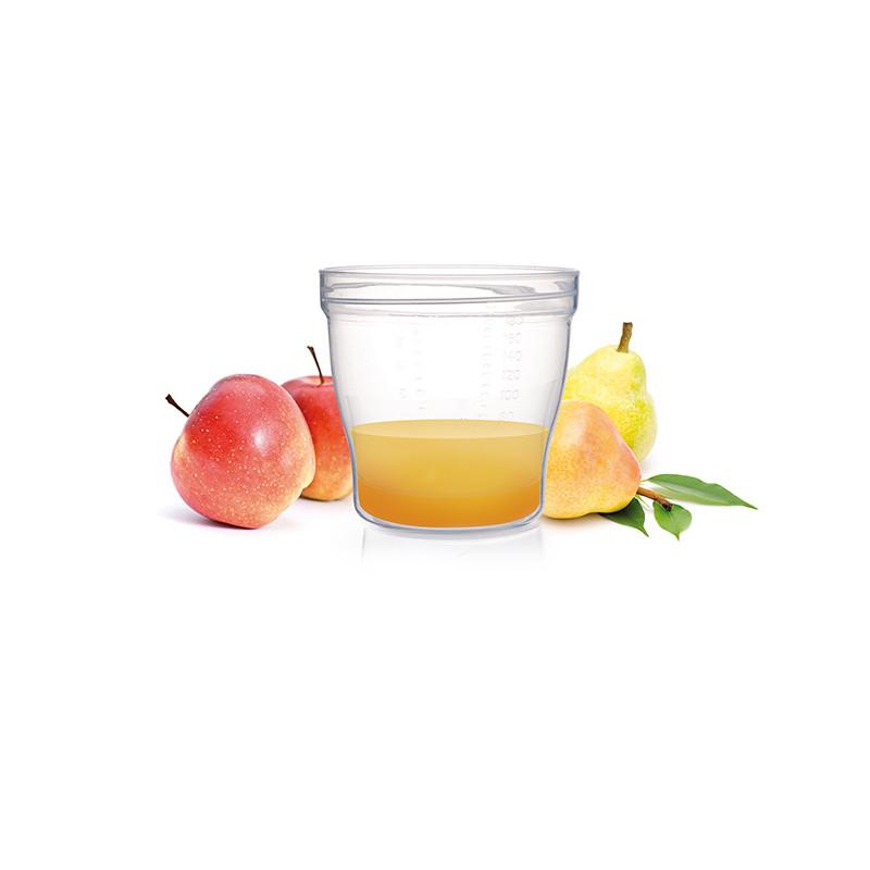 Praktické nádoby umožňujú dlhodobé skladovanie potravín pri zachovaní vysokej kvality. Majú pevné viečka, aby sa nič nevylialo ani pri naklonení nádoby. Môžete ich klásť na seba. Viečko môžete použiť aj ako stojan – na lepšiu stabilitu pri prenose tekutín. Majú zreteľnú stupnicu. Sú z materiálu určeného na styk s potravinami. Balenie obsahuje 4 kusy s viečkami. Objem 180 ml.
