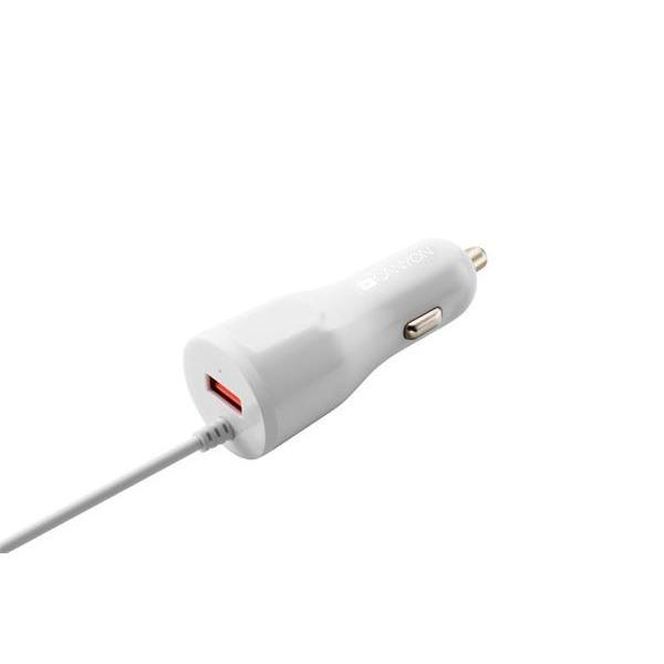 CANYON CNE-CCA033W, UNIVERZALNA AUTONABIJACKA, 1X USB, VYSTUP 5V/2,4A, SMART IC, INTEGROVANY KABEL L