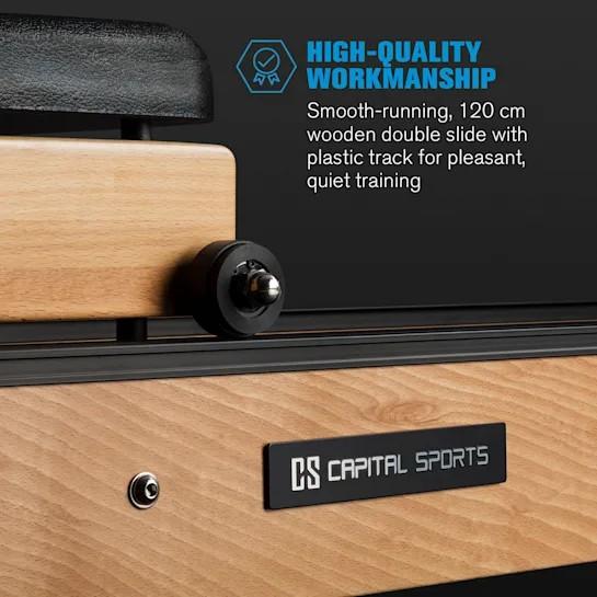 - Veľmi kvalitné spracovanie: hladko pohyblivé, 120 cm drevené dvojité koľajničky s plastovou klznou dráhou pre príjemný a tichý tréning