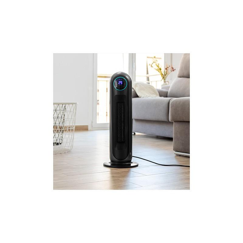 - Keramický ohrievač s výkonom 2200 W, ktorý vďaka svojej keramickej technológii dokáže dosiahnuť teplejšiu atmosféru pri pobyte až 22 m², čo zodpovedá objemu takmer 50 m³.