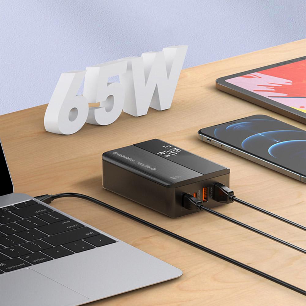 Prémiová 65W nabíjačka s LED displejom, 2 USB porty podporujúce technológiu rýchleho nabíjania Quick Charge 3.0/4.0 a 2 USB-C PD podporujúce PD ( Power Delivery ) 2.0/3.0, PPS; BC1.2 DCP 5V-1,5A; APPLE 5V-2,4A; RÝCHLE NABÍJANIE APPLE; SAMSUNG 5V-2A/AFC/SFC; QC2.0/3.0/4.0+; HUAWEI FCP/SCP,VOOC.)PPS/AFC/FCP/ Apple - protokoly rýchleho nabíjania. Inteligentné nabíjanie dokáže rýchlo a bezpečne nabíjať až 4 mobilné zariadenia súčasne: smartfóny, tablety, zariadenia s externými batériami a mnoho ďalších. Inteligentný mikroobvod USB Auto ID určuje typ pripojeného zariadenia, reguluje silu napätia a prúdu, zaisťuje rýchle nabíjanie a vysokú kompatibilitu so zariadeniami väčšiny značiek. Zariadenie má vysokú bezpečnosť - ochranu proti prepätiu, preťaženiu, skratu, prehriatiu, pevné a ohňovzdorné puzdro odoláva až 850C teplote.