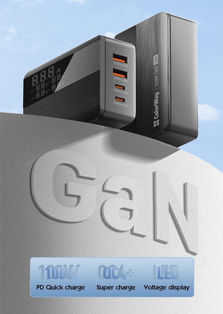 COLORWAY AC NAB. POWER DELIVERY GAN (2USB-A + 2USB TYPE-C) (100W) CIERNA (CW-CHS041PD-BK)
