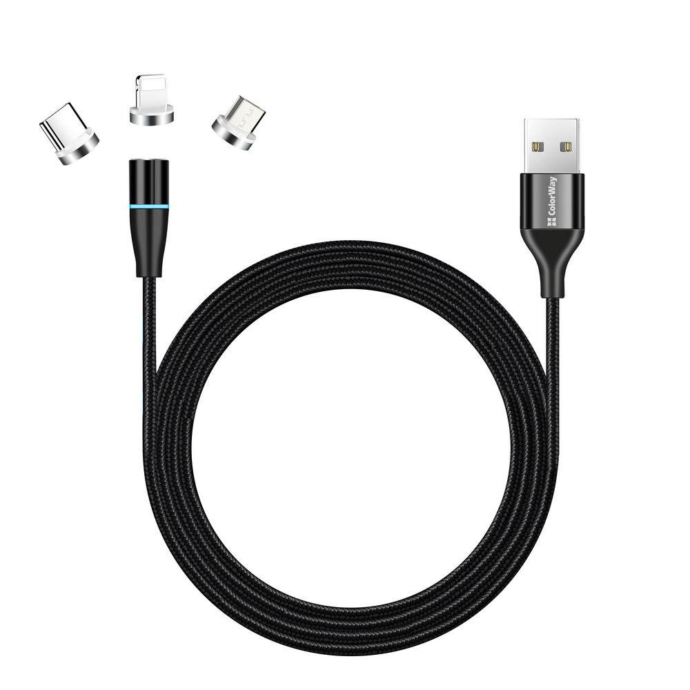 COLORWAY KABEL UNIV. 3V1 (LIGHTNING+MICROUSB+TYPE-C) DATOVY/NABIJACI, MAGN., 1M (CW-CBUU038-BK)
