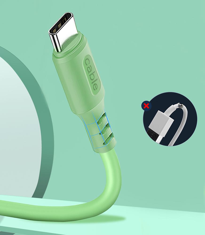 Materiál káblu je vyrobený z mäkkého silikónu, ktorý zabráni zamotaniu a prípadnému poškodeniu kábla. Dĺžka kábla je 1 meter, čo je dostačujúce na pohodlné používanie doma alebo v kancelárii.