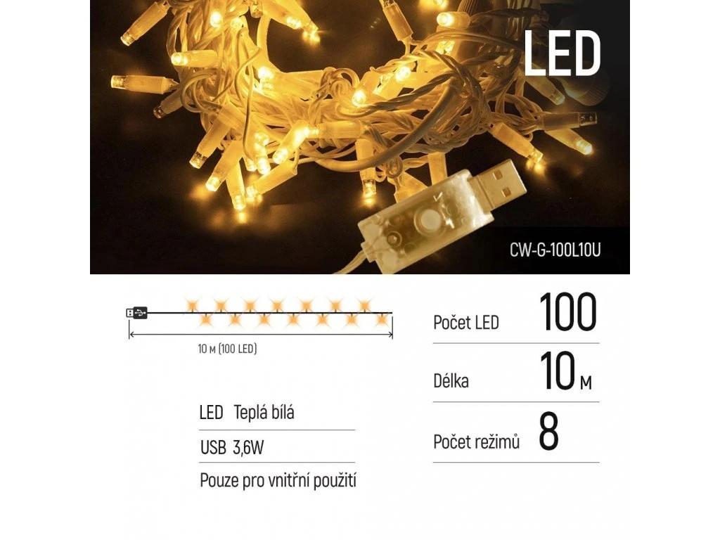 Led reťazové svietidlo, Dĺžka:10m, Farba:teplá biela