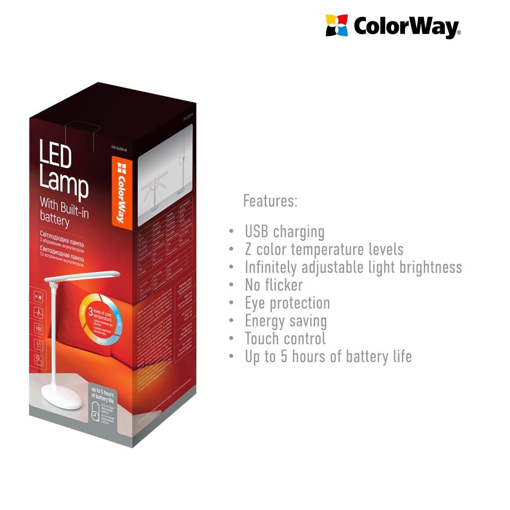 COLORWAY LED STOLNA LAMPA CW SO ZABUDOVANOU BATERIOU, BIELA (CW-DL02B-W)