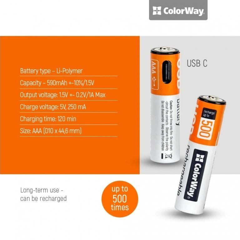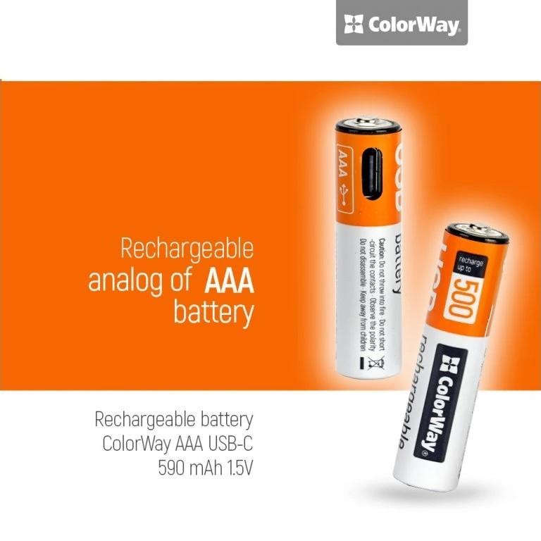 COLORWAY RECHARGEABLE BATTERY AAA MICRO USB-C 590MAH 1.5V (LI-POLYMER) (2PCS.) (CW-UBAAA-09) (CW-UBA