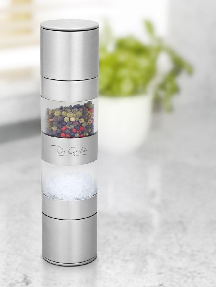 Moderný a praktický pomocník do kuchyne. Mechanický mlynček na hrubozrnnú soľ a všetky druhy korenia. Vhodné pre domáce použitie. Spojenie krásneho designu so skvelou funkčnosťou. Vo vnútri mlynčeka je pevný keramický mlecí mechanizmus.