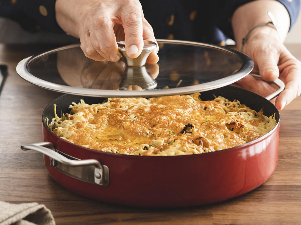 Pokrievky skvelo uzavrú chuť a vlhkosť pri pečení alebo varení a vyprážanie parou zvládnete bleskovo. Sklenené pokrievky sú odolné voči teplu, vďaka čomu môžete sledovať jedlo bez toho, aby ste museli zdvihnúť pokrievku a narušiť proces varenia, vďaka čomu ušetríte energiu aj čas.