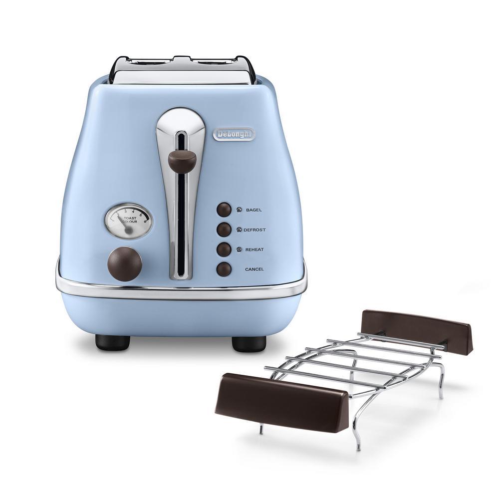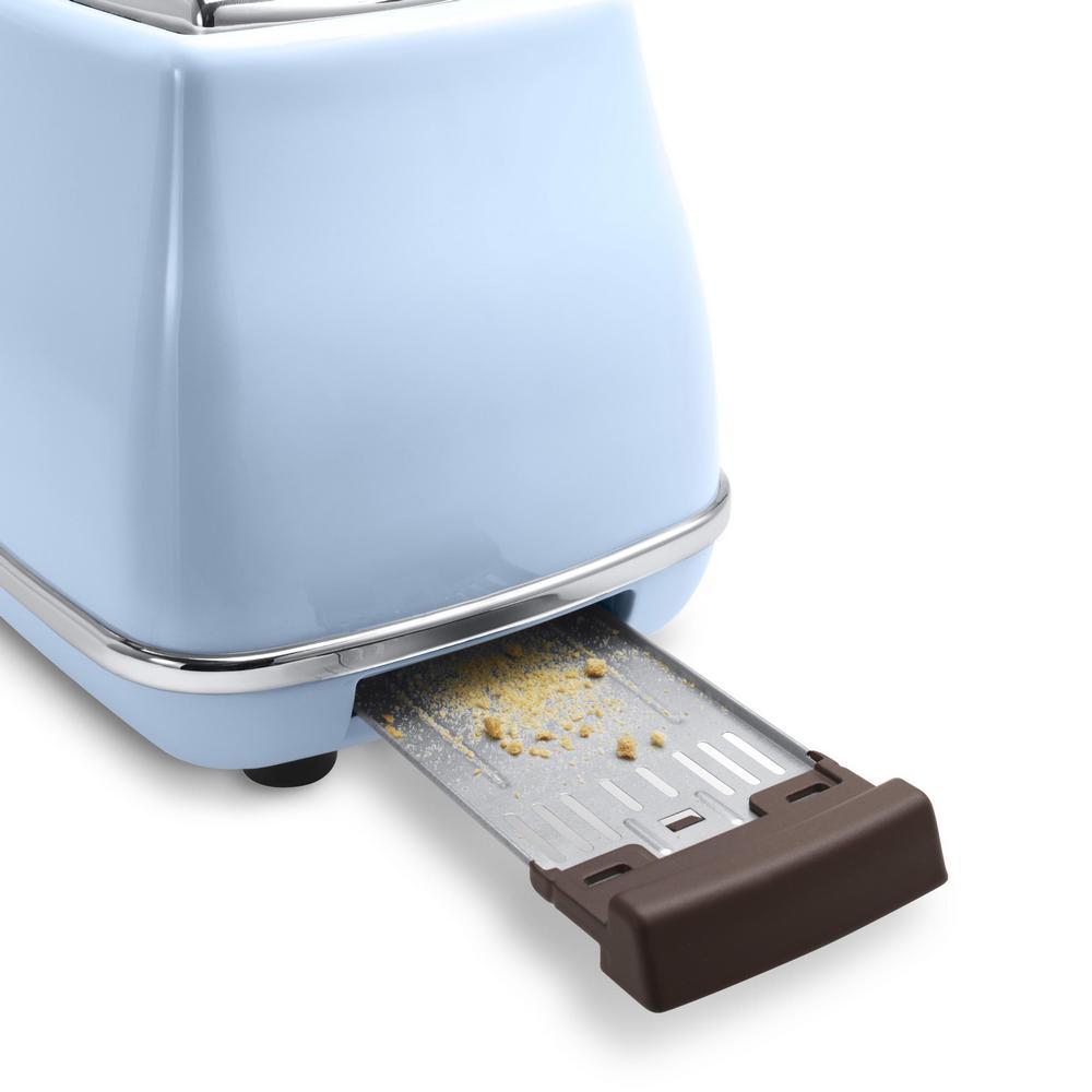 Dvojplátkový hriankovač De'Longhi Icona Vintage CTOV 2103.AZ v retro prevedení s nádychom talianskeho dizajnu a elegancie. Je vyrobený z jedinečného vysoko lesklého materiálu s chrómovanými a matnými detailmi. Raňajková kolekcia De'Longhi Icona Vintage stelesňuje eleganciu, sofistikovanosť a retro štýl. Ide o skutočný ideál talianského dizajnu.
