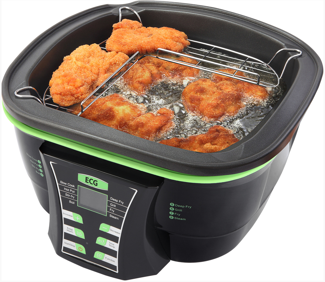 Ideálny mnohostranný pomocník do kuchyne, ktorý šetrí Váš čas i peniaze za spotrebiče, ktoré tento hrniec dokáže spoľahlivo nahradiť. Hrniec má 9 funkcií - fondue, pomalé varenie, dusenie, smaženie, varenie, fritovanie, grilovanie, zapekanie, varenie v pare. Aby mohla byť všestrannosť hrnca splnená, súčasťou balenia je aj nevyhnutné príslušenstvo: fondue set 6 vidličiek, mriežka na varenie v pare, mriežka na grilovanie, odkvapkávacia mriežka na prebytočný olej, fritovací kôš. Výhodou je aj jednoduché čistenie, stačí vybrať a umyť nádobu, pokrievku, prípadne príslušenstva a hrniec je opäť pripravený na použitie. Objem nádoby 5 l, nastaviteľná teplota 50-240 ° C, tepelne izolovaný plášť, to sú všetko ďalšie báječné parametre tohto hrnca.