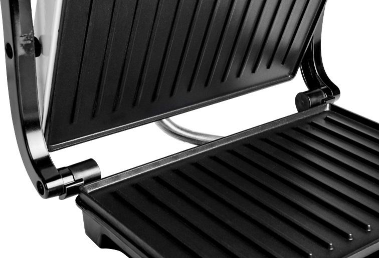 Panini maker / Mini gril, Vhodné k príprave panini, zapečených toustov, mäsa, zeleniny, Jednoduchá údržba vďaka nepriľnavej úprave plôch na pečenie, Tepelne izolované madlo, Zámok dosiek pre ľahšiu manipuláciu