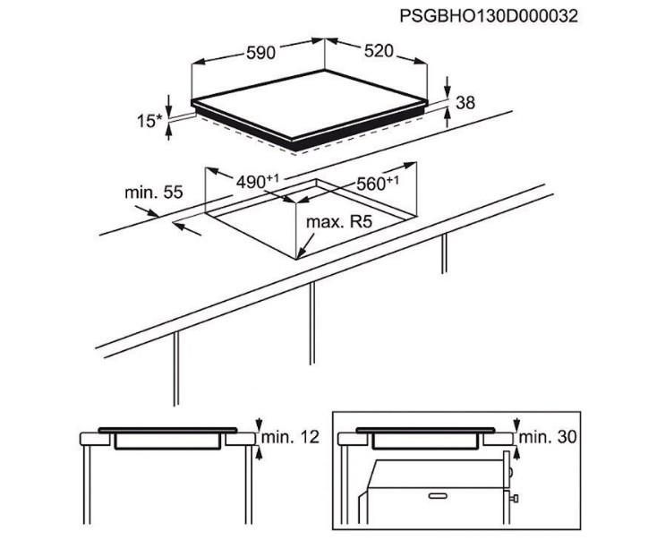 Sklokeramická varná doska, Šírka (mm) 590, Hĺbka (mm) 520, Všeobecná veľkosť (cm) 60, Vstavaná výška (mm) 38