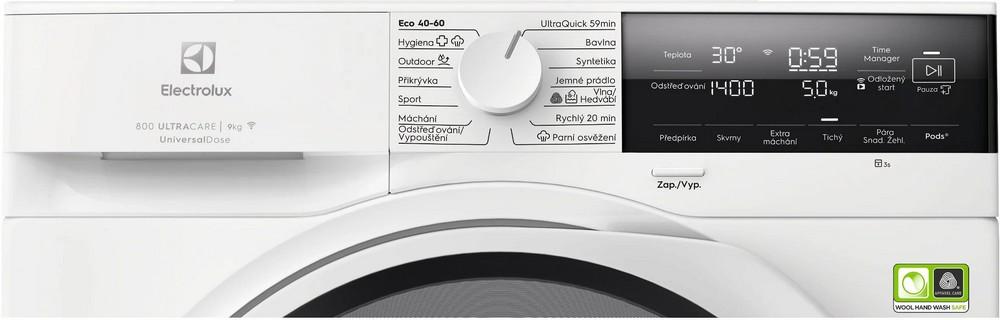- Funkcie: zap./vyp., Temp, Spin, predpranie, STAIN, ExtraRinse, SILENT, SteamEasyIron, Pods, DelayRemote, TimeManager, štart/pauza