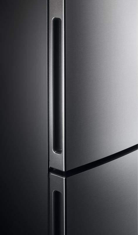 Špičkový dizajn tejto chladničky perfektne zapadne do modernej kuchyne. Vďaka jednoduchým líniám a plochému tvaru sa skvele dopĺňa s ostatnými kuchynskými spotrebičmi a pracovnými plochami. Zapustené, skryté rukoväte v dolnej časti dvierok dotvárajú elegantný vzhľad.
