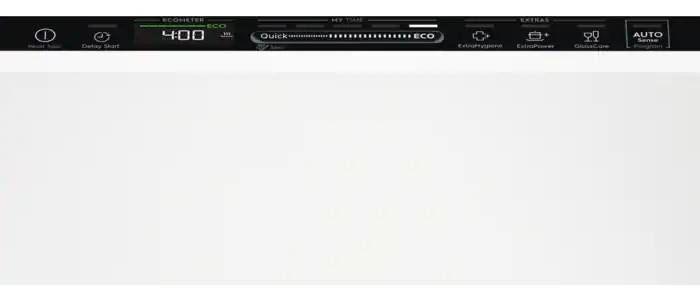 - Programy: 160 minútový, 60 minútový, 90 minútový, AUTO Sense, Eko, Machine Care, rýchly 30 minútový, opláchnutie