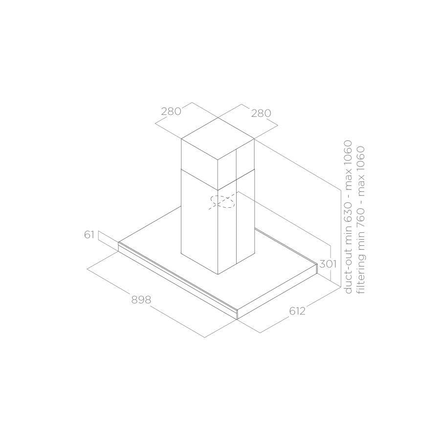 Digestor, Sací výkon minimálny / maximálny: 325 - 630 (770) m3/hod, Priemer výstupného otvoru: 150 mm, Hlučnosť minimálna / maximálna: 55 - 69 (74) dB(A)