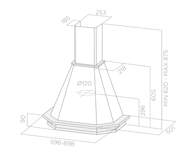 Elica EMERALD WH/A/90 T.GREZZO. Maximálny výkon odsávania: 990 m3/hodinu, Typ oddelenia: Zvedené / recirkulačné, Úroveň hluku: 65 decibel. Model: Nástenný, Typ lampy: Halogen, Farba: biela. Celková spotreba: 236 watt, Výkon lampy: 28 watt. Šírka: 89,8 centimeter, Hĺbka: 50,1 centimeter, Výška: 60,5 centimeter
