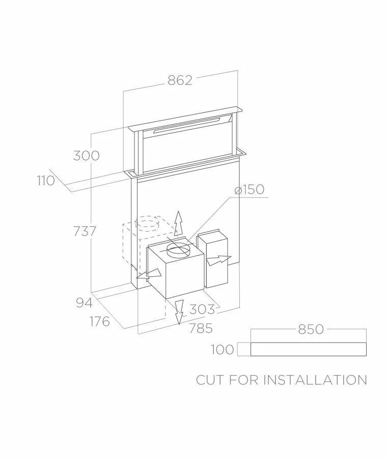Digestor, Sací výkon maximálny: 750 m³ / h, Priemer výstupného otvoru: 150 mm, Hlučnosť minimálna / maximálna: 43 - 62 db (A)