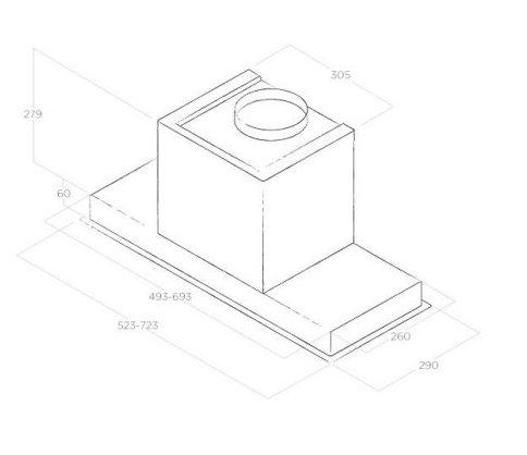 Prevedenie: nerez, Rozmery: do skrinky šírky 60 cm, Osvetlenie: LED 2x2,5 W, Sací výkon minimálny / maximálny: 225 - 475 (600) m3/hod, Hlučnosť minimálna / maximálna: 49 - 65 (69) dB, Priemer výstupného otvoru: 150 mm