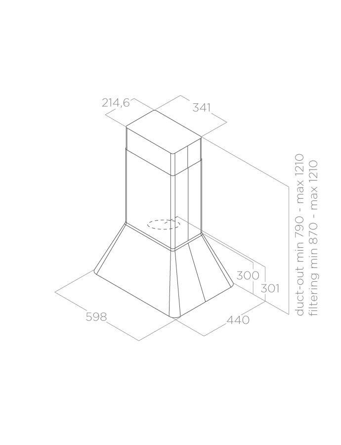 Digestor, Sací výkon minimálny / maximálny: 250 – 475 ( 610 ) m3/hod, Priemer výstupného otvoru: 150 mm, Hlučnosť minimálna / maximálna: 47 – 62 ( 67 ) dB (A)