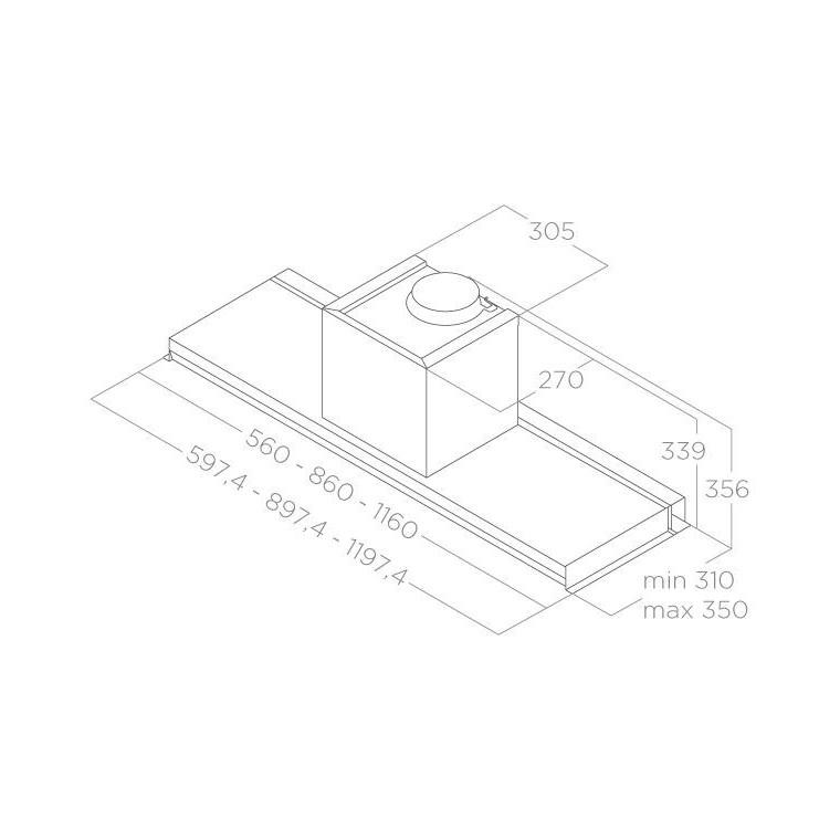 Digestor, Sací výkon maximálny: 603 m3/hod, Priemer výstupného otvoru: 150 mm, Hlučnosť minimálna / maximálna: 46 - 67 dB (A)