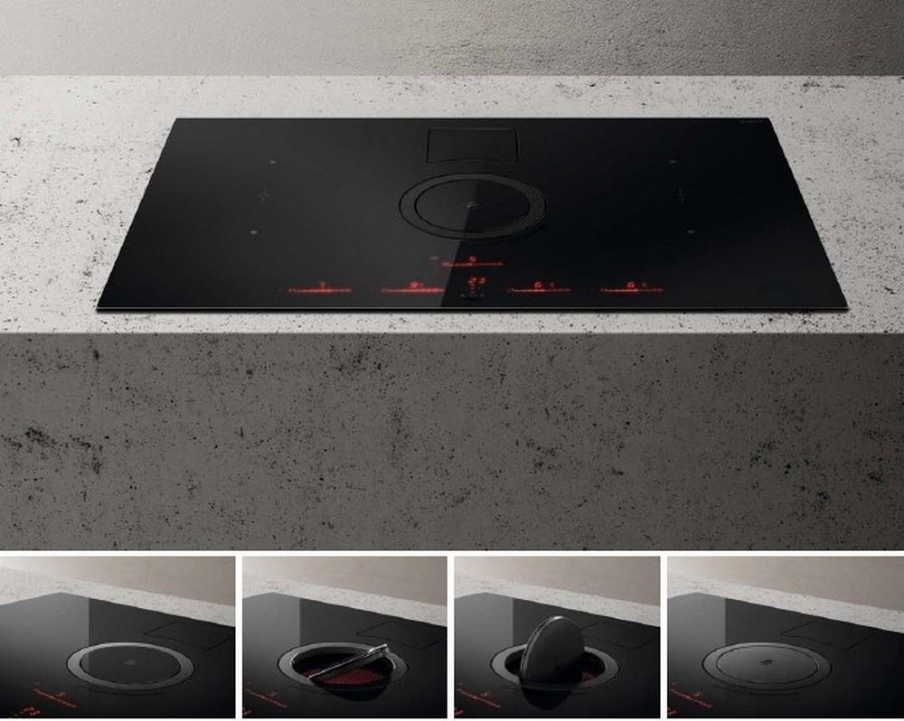 Varná doska s integrovaným odsávačom pár, Sací výkon max.: 536 m3/hod., Indukčná varná doska-celkový príkon: 7,4 kW, Hlučnosť max.: 74 dB(A)