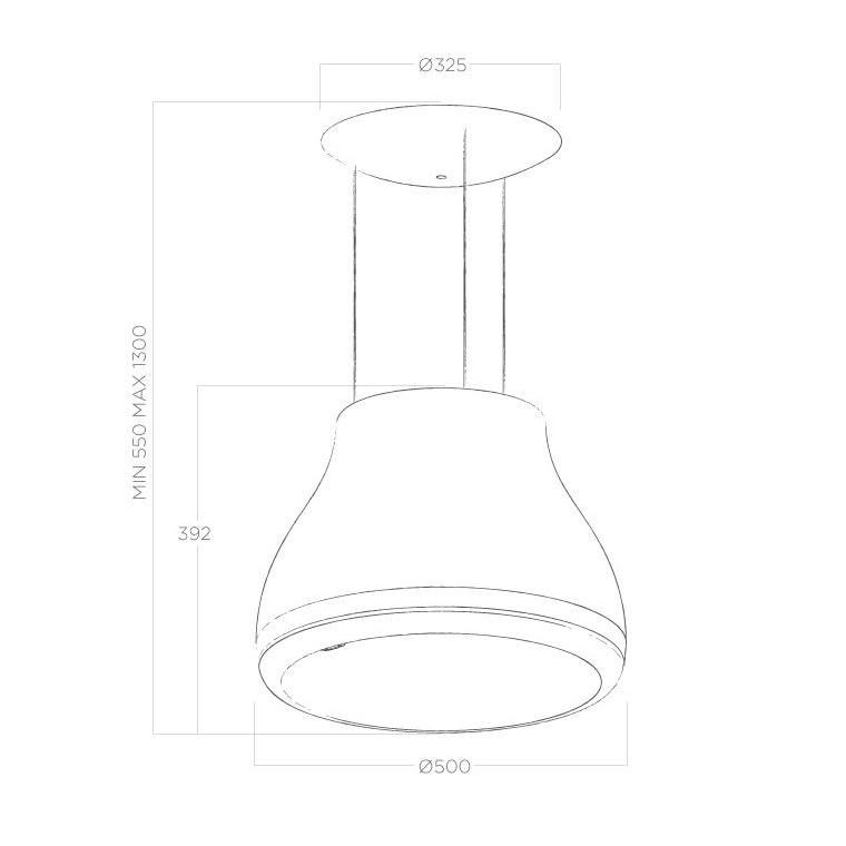 Digestor, Sací výkon 400 m³/h, Ovládanie diaľkové ovládanie 3s+b, Úplna absorpcia 346 w, Hladina hluku 67 db(a)