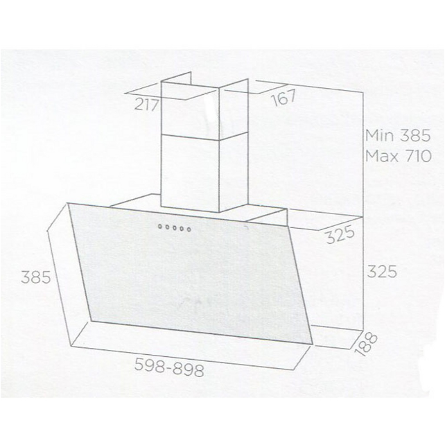 Nástenný odsávač pár, Výkon motora: 900m3 / h, Ovládanie: 2S + B dotykové, Spotreba: 272 W, Hlučnosť: 60 (67) db