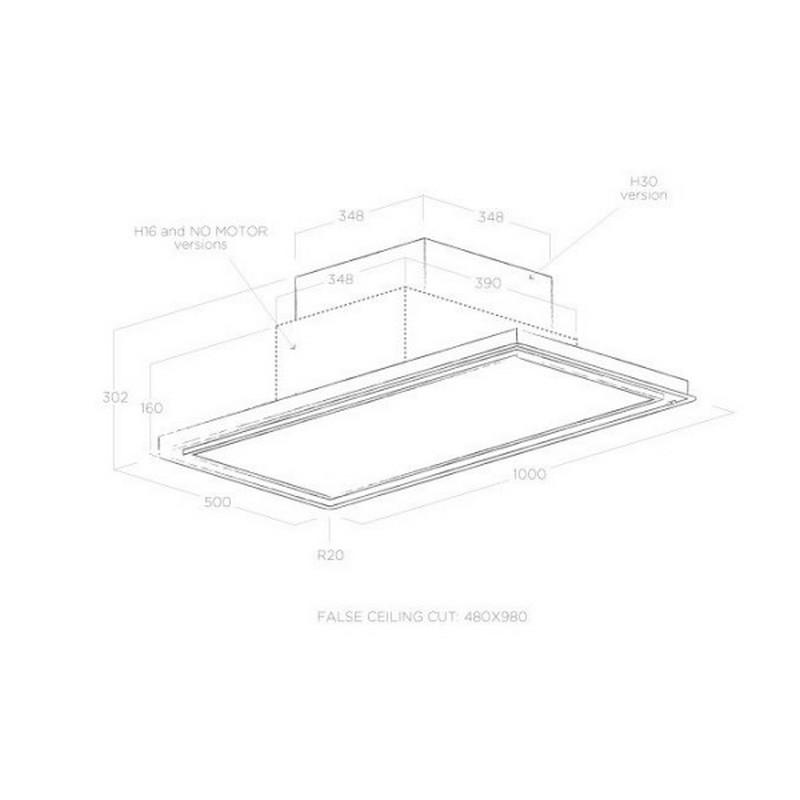 Stropný digestor, Rozmery: 100x50 cm, Sací výkon min./max.: 150-770 m3/hod, Hlučnosť min./max.: 39-65 dB(A), Osvetlenie: LED PANEL 28W/1123LUX/2400-5000K, Energetická trieda: A