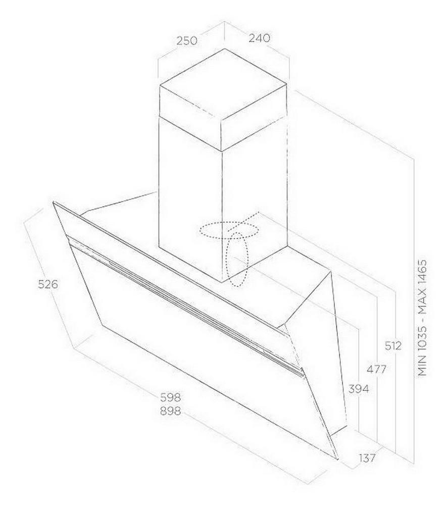 Digestor, Sací výkon minimálny / maximálny: 288 - 603 (757) m3/hod, Priemer výstupného otvoru: 150 mm, Hlučnosť minimálna / maximálna: 50 - 65 (69) dB(A)