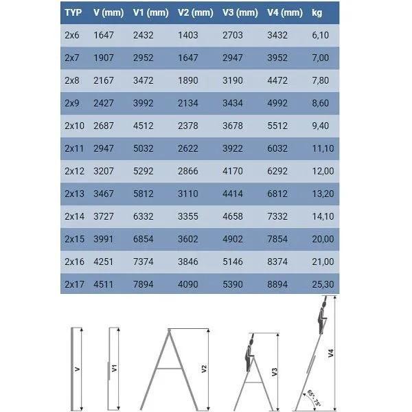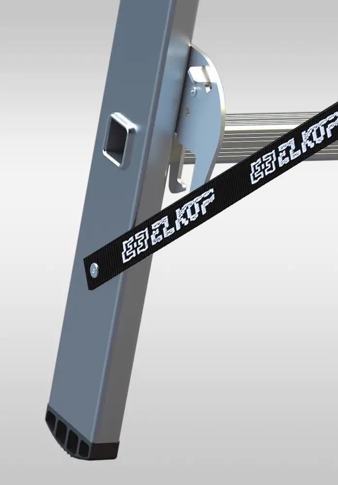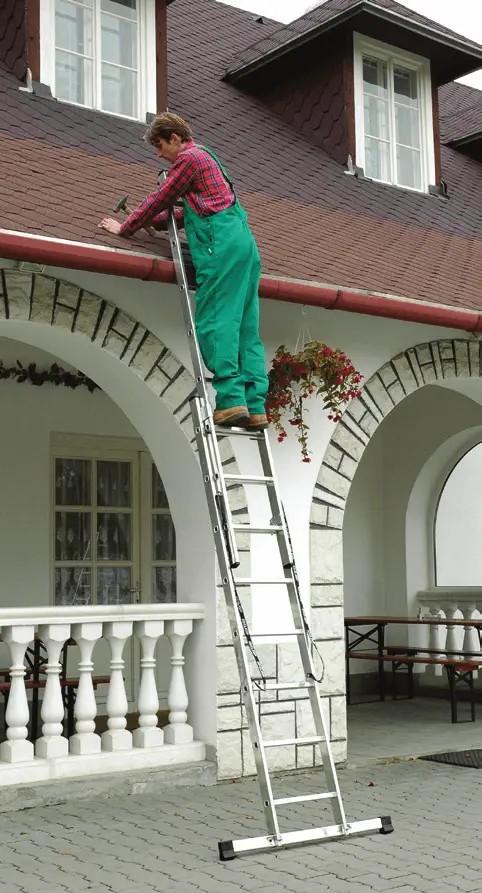 Viacúčelovo využiteľný, veľmi obľúbený dvojitý rebrík, ktorý je ideálny ako pre domácich majstrov, tak aj pre profesionálnych majstrov. Môžete ho použiť ako klasický „áčkový“ rebrík, alebo si spojíte oba ramená a získate tak oporný jeden rebrík. Vďaka oceľovým kĺbom je jeho predĺženie bezpečné a jednoduché. Zaisťovacie popruhy zabraňujú náhodnému roztvoreniu rebríka. Protišmykové papuče zabezpečujú stabilitu rebríka.