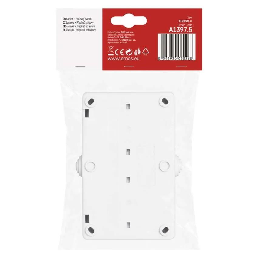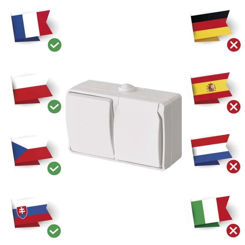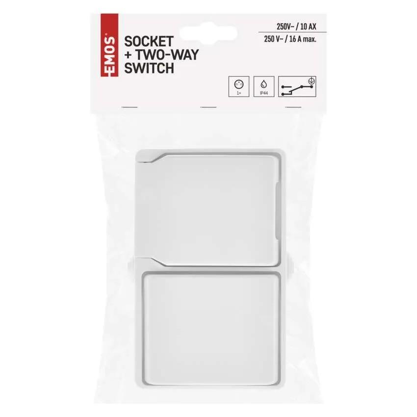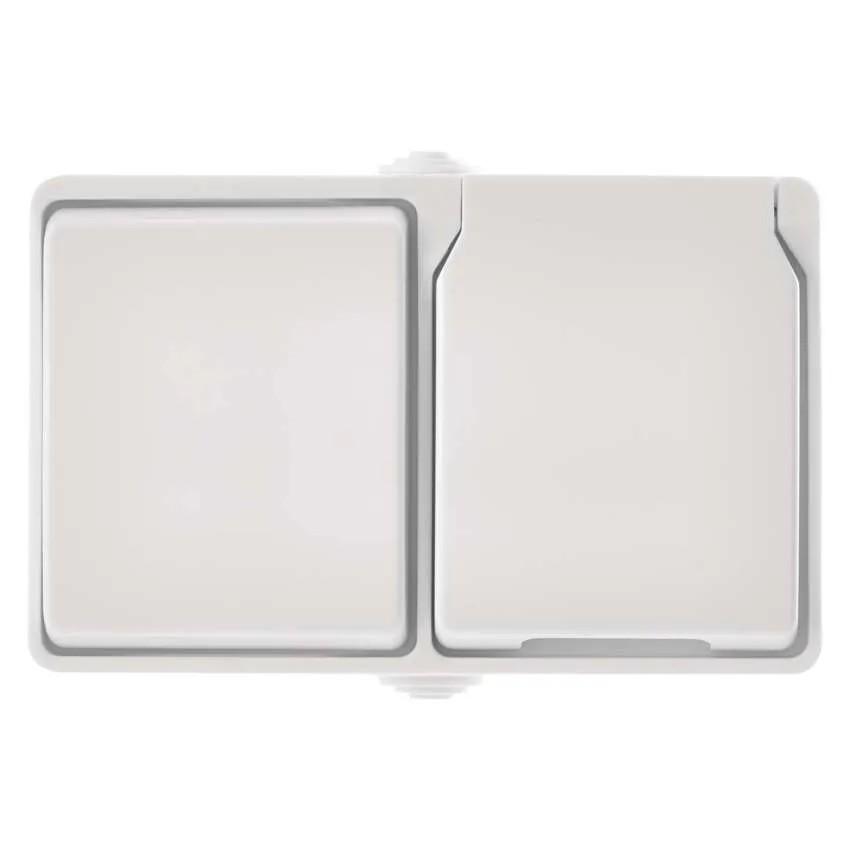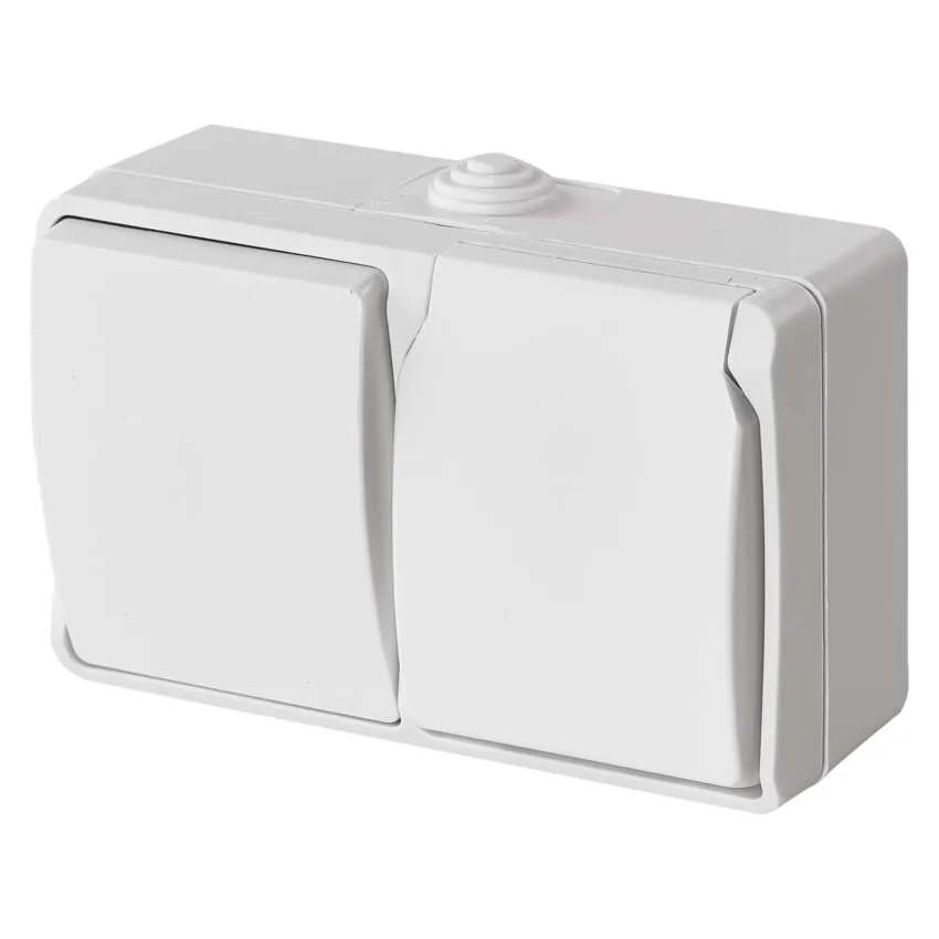 Zásuvka + prepínač, spôsob montáže na stenu, krytie IP54, prevedenie 1 tlač. schodiskový vodeodolný, typ 250 V~/10 AX