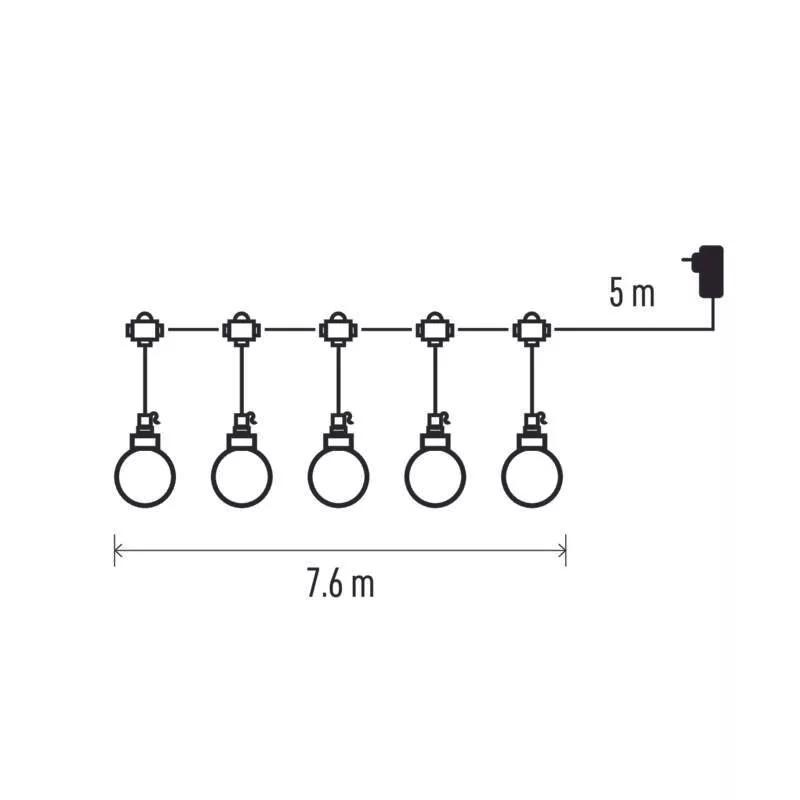 EMOS DCPW07 20× PARTY ZIAR. 20LED 7,6M PLAST IP44 WW