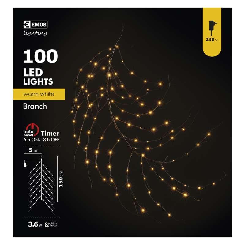 LED vetvička, 150cm, vonkajšia, teplá biela, časovač, napätie: 230 V, životnosť : 10 000 hodín, auto on/off: áno