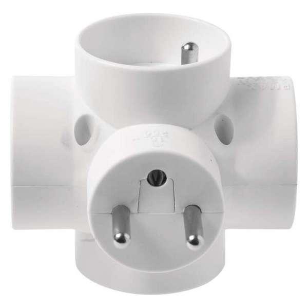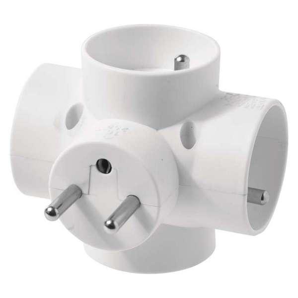 Rozbočovacia zásuvka 4×, napätie/prúd: 250 V~/10 A max., max. záťaž: 2 300 W, krytie: IP20, materiál: plast, farba: biela