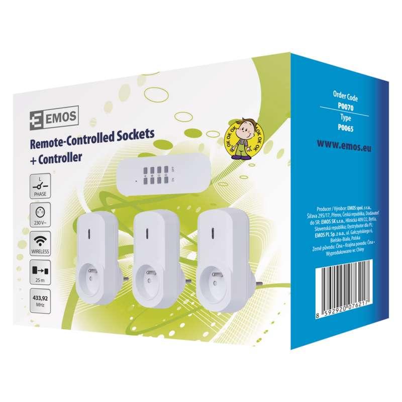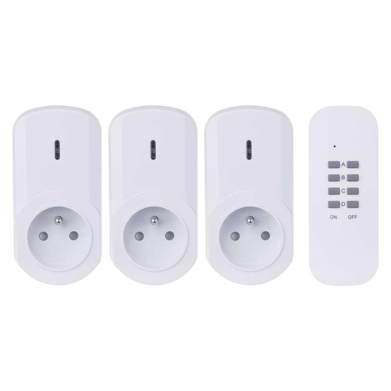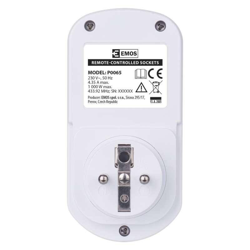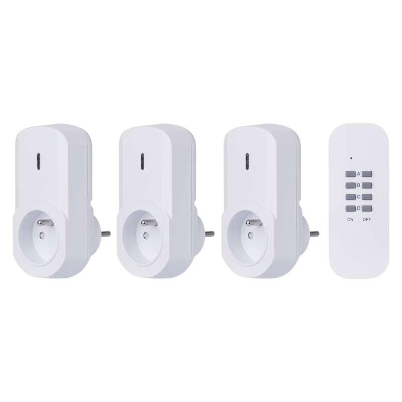 Diaľkovo ovládané zásuvky, produkt diaľkovo ovládané zásuvky, 3 zásuvky + 1 × diaľkový ovládač, počet zásuviek 1× 2P + PE, vypínač nie, napätie/prúd 230 V~/4,35 A max., detské clonky áno, farba biela, krytie IP20