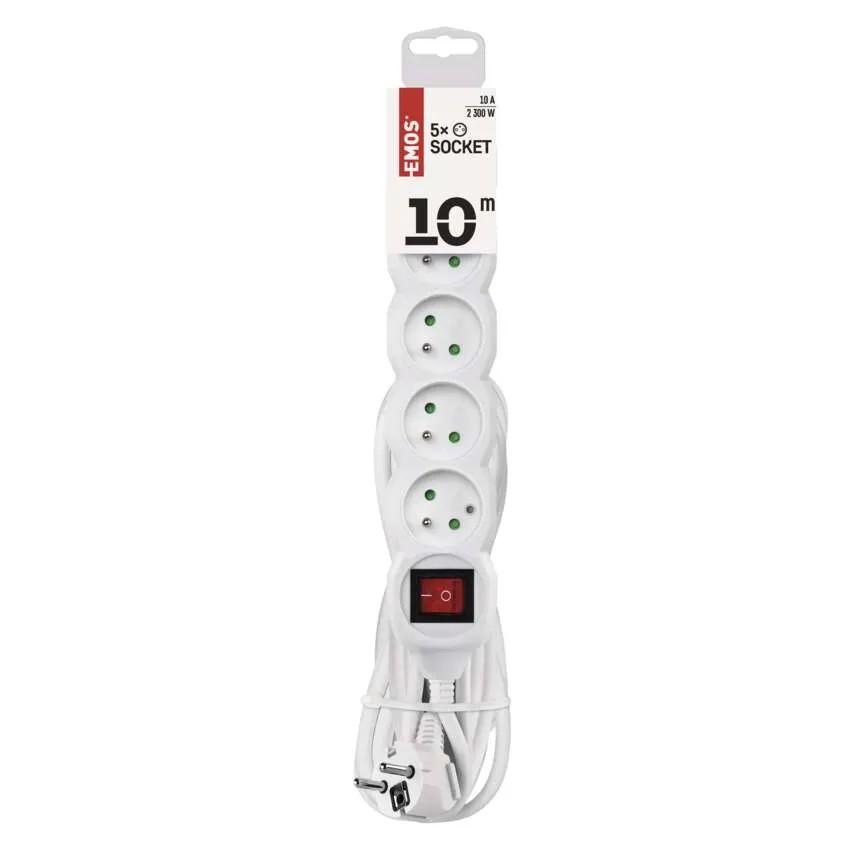 EMOS P1510 PREDLZOVACI KABEL 10 M/5 ZASUVIEK/S VYPINACOM/BIELY/PVC/1 MM2