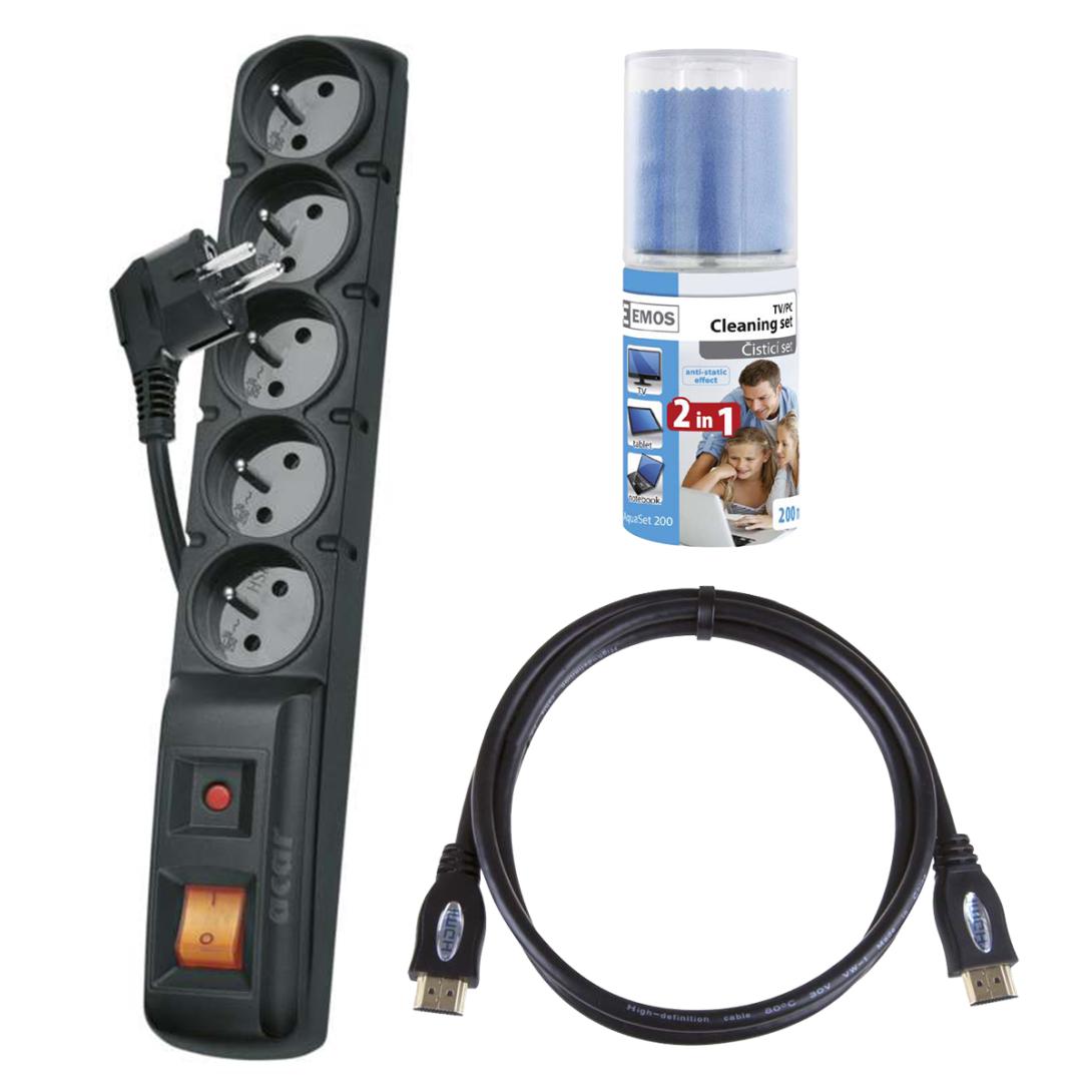 Predlžovačka s čistacim setom, dĺžka 1,5 m, počet zásuviek 5× 2P + PE, farba čierna, menovité napätie 250 V~, 50 Hz, detské clonky áno, istený poistka s čas. onesk. 10 A/250 V