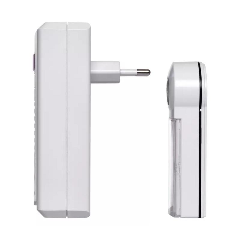 Spoľahlivý zvonček, ktorý sa hodí nielen k domu, ale aj bytu, alebo do kancelárie, dosah tlačidla 60 m, napájanie hlavnej jednotky 230 V AC, vodeodolné tlačidlo áno, prenosová frekvencia 433 MHz