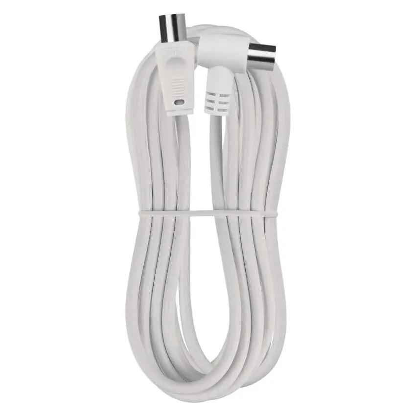 Anténny koaxiálny kábel s vidlicou a zásuvkou IEC. Kábel má uhlový konektor (90°). Kábel má dvojité tienenie pre redukciu elektromagnetického rušenia. Dĺžka kábla je 3,5 m. Koaxiálny kábel je vhodný pre SAT, DVB-T, ANT, DECODER, FLAT TV a TV.