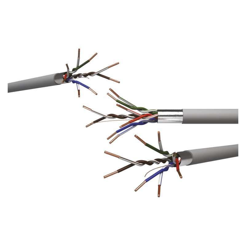 Tienený horizontálny kábel najvyššej kvality kategórie CAT5E s PVC plášťom. Jadrá vodičov vyrobené z nerecyklovanej medi. Kábel spĺňa požiadavky smernice CPR o stavebných výrobkoch.