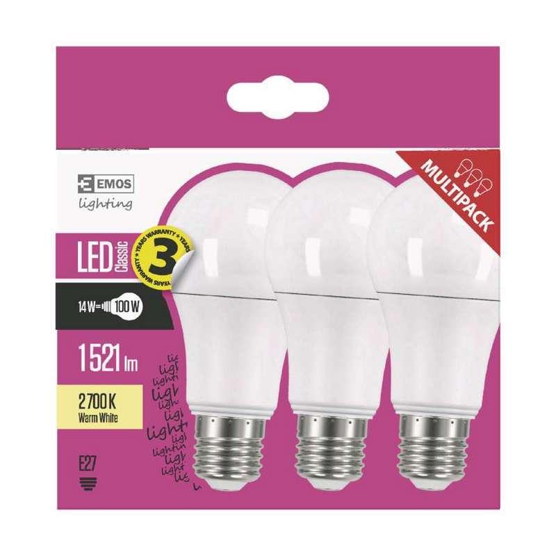 LED Žiarovky, technológia LED, pätica (uchytenie žiarovky) E27, tvar classic A60, svetelný tok 1 521 lm, príkon 14 W, teplota chromatičnosti 2 700 K, svetelná účinnosť 109 lm/W