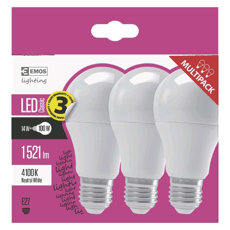 LED Žiarovky, technológia LED, pätica (uchytenie žiarovky) E27, náhrada za žiarovku 100 W, svetelný tok 1 521 lm, príkon 14 W, teplota chromatičnosti 4 100 K