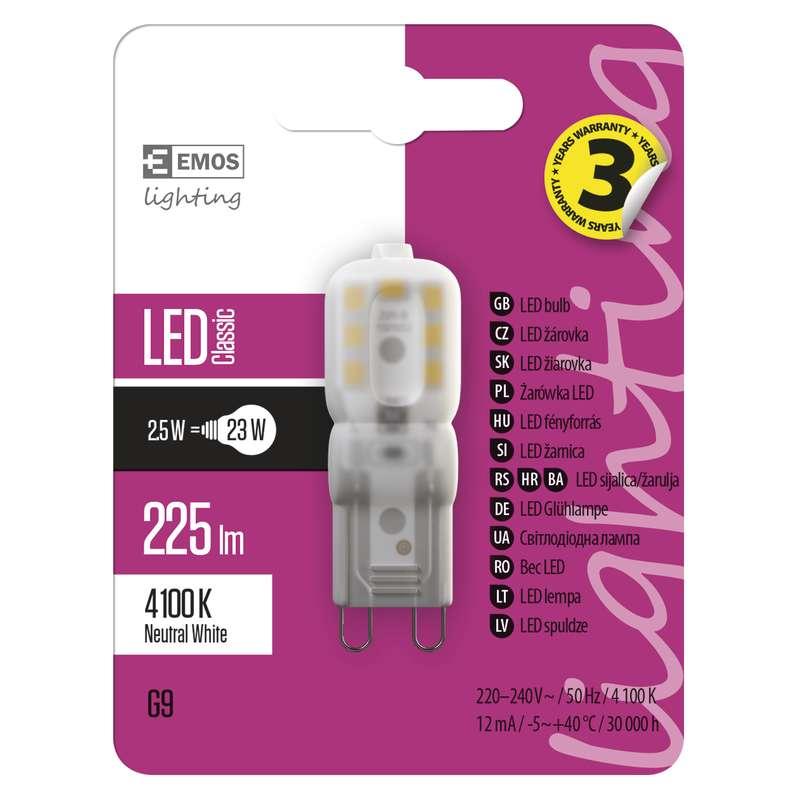 EMOS ZQ9523 LED ZIAROVKA CLASSIC JC A++ 2,5W G9 NEUTRALNA BIELA vystavený kus
