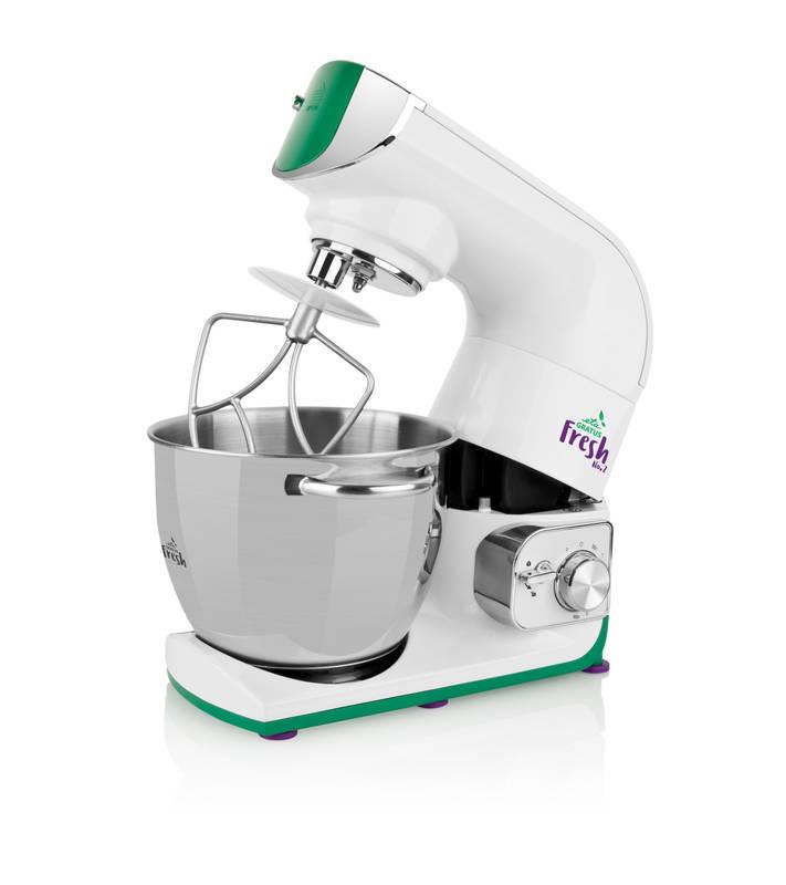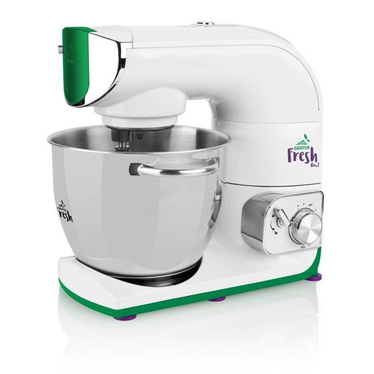 S robotom Gratus Fresh No.2 dokážete pripraviť skoro všetko. V kvalitnej nerezovej mise o objeme 5,5 l pripravíte pomocou hnetacieho háku, miešacej a šľahacej metly, či špeciálnej flexi metly najrôznejšie druhy tortových zmesí, kysnutého cesta, ale tiež polevy, náplne, krémy alebo aj zemiakovú kašu.