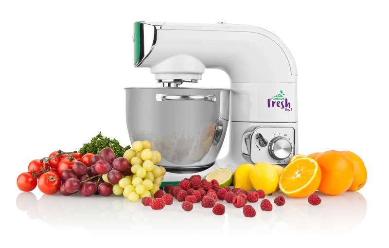 Gratus Fresh No. 2 je unikátny predovšetkým príslušenstvom, určeným špeciálne pre získavanie šťiav z ovocia a zeleniny, ktoré sú bohaté na vitamín C, B, D a ďalšie. Vďaka lisu na ovocie, bobuľoviny a zeleninu si doma môžete vyrobiť džús z ríbezlí, čučoriedok, malín alebo uhoriek a paradajok. Na džúsy z citrusových plodov – pomarančov, citrónov a grepov je špeciálne určený citrusovač. Súčasťou balenia je samozrejme tiež 0,8 litrová nádoba na šťavu a čistiaca kefka.